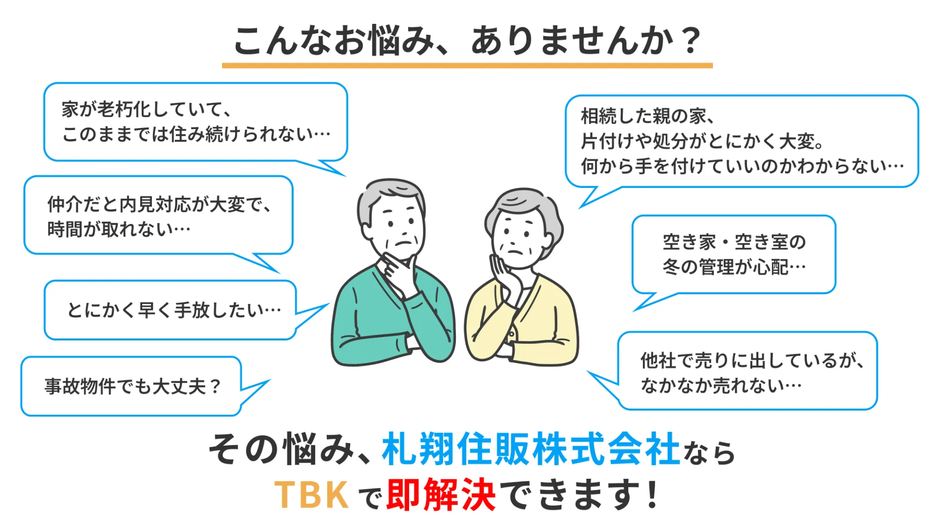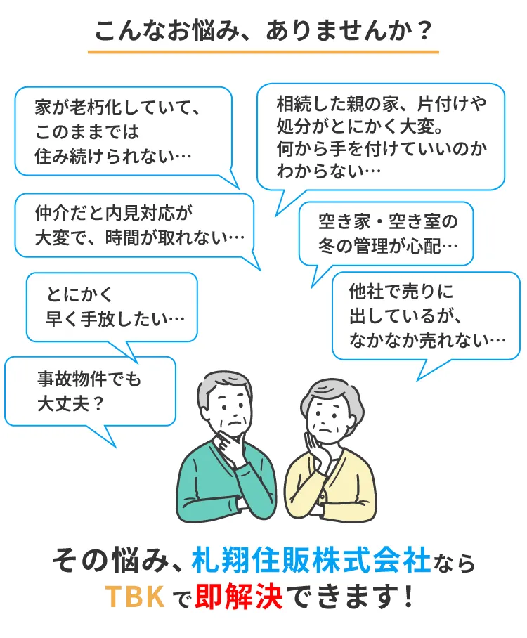 札幌市の札翔住販株式会社では、少数精鋭の強みを活かし、スピーディーな不動産買取を行っています。「手っ取り早く買い取る(TBK)」をモットーに、代表判断による迅速な査定対応を実施し、無駄な時間をかけず早期の現金化が可能です。仲介を挟まないため余計な手数料がかからず、できる限り高い買取価格をご提案できる点も特長です。